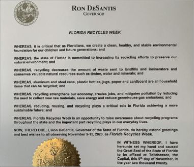 A Message from Governor Ron DeSantis – Observing Florida Recycles Week 2020