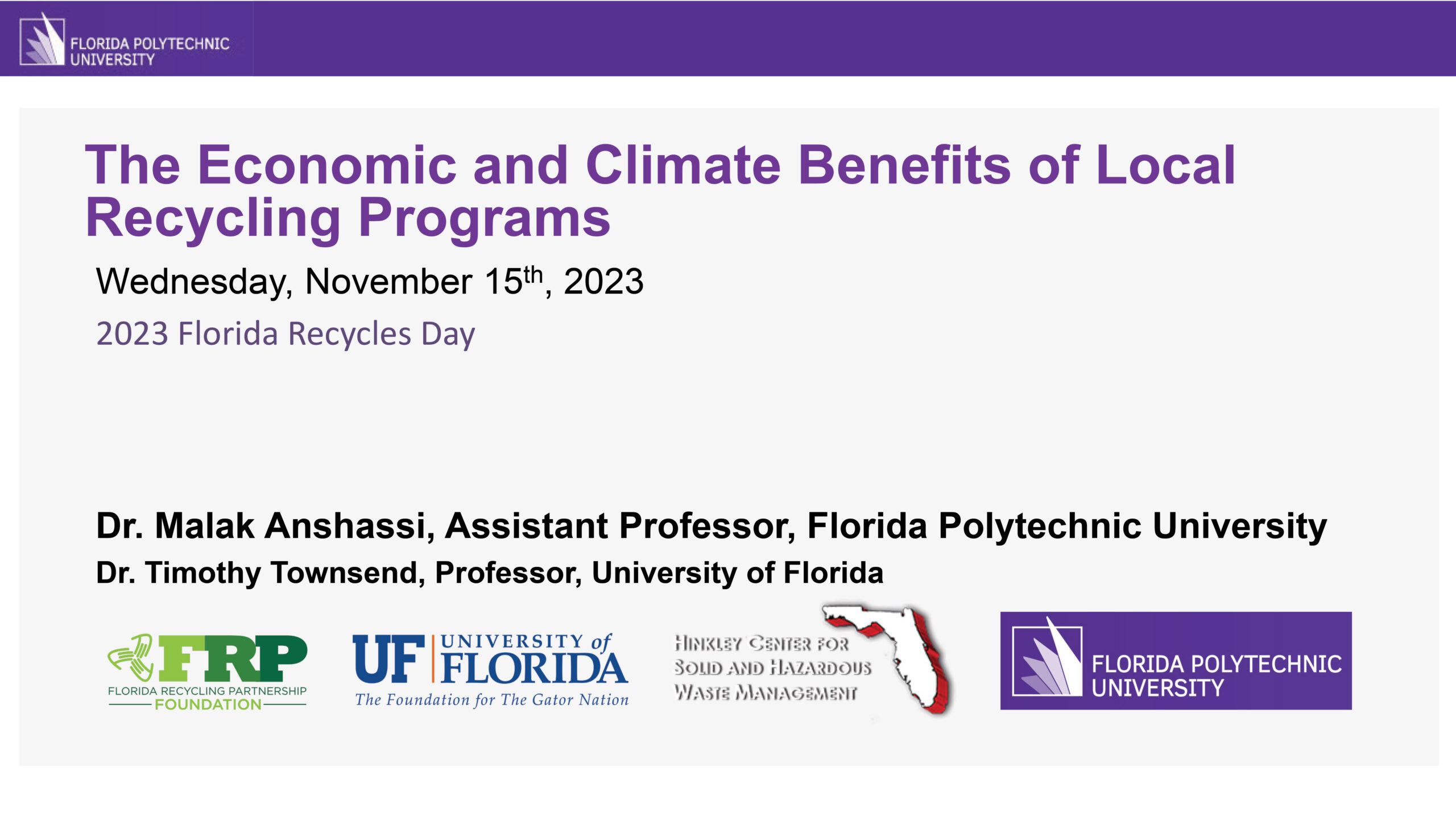 - Presentation of Florida Recycling Partnership Foundation Recycling Champions Awards