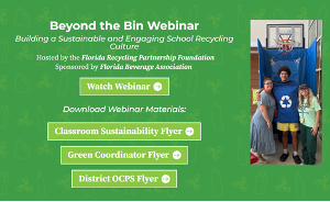 The webinar features educational sessions from David Klawitter of Orange County Public Schools, who shares how their recycling and food-waste program was launched, and Chris Perry of the Florida Department of Environmental Protection, who provides practical tips on starting a school recycling program and explains the importance of conducting a waste audit.