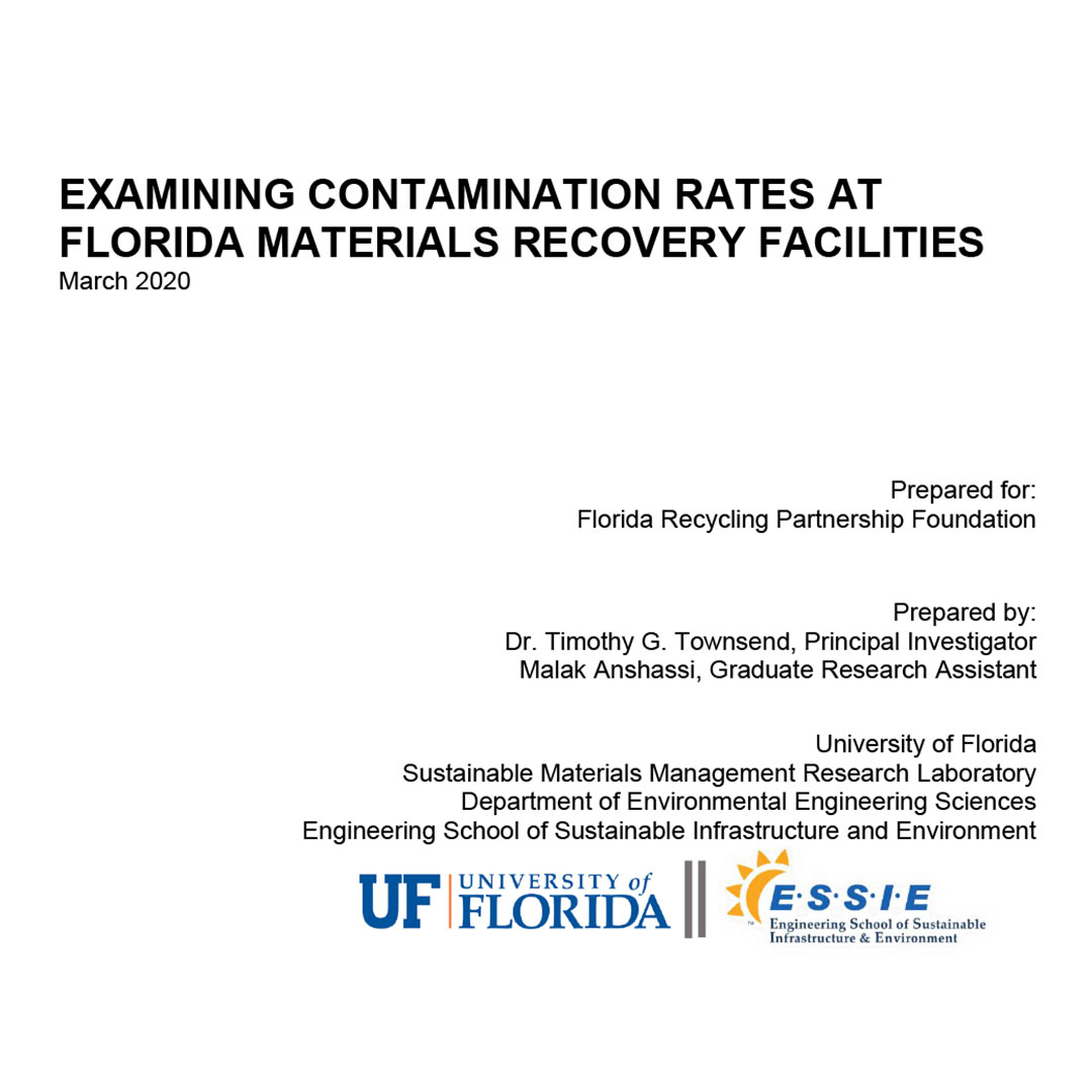The Department of Environmental Engineering Sciences at the University of Florida (UF) conducted research on the current and historic state of materials recovery facilities’ (MRFs) contamination rates. MRF’s across Florida operate to serve communities that institute either single stream (SS) or dual stream (DS) recycling programs. We collected information from these MRFs on the types and masses of waste incoming into and output from the facility. The data was used to quantify historic contamination rates, which is defined in this study as the percent of total inbound mass landfilled.